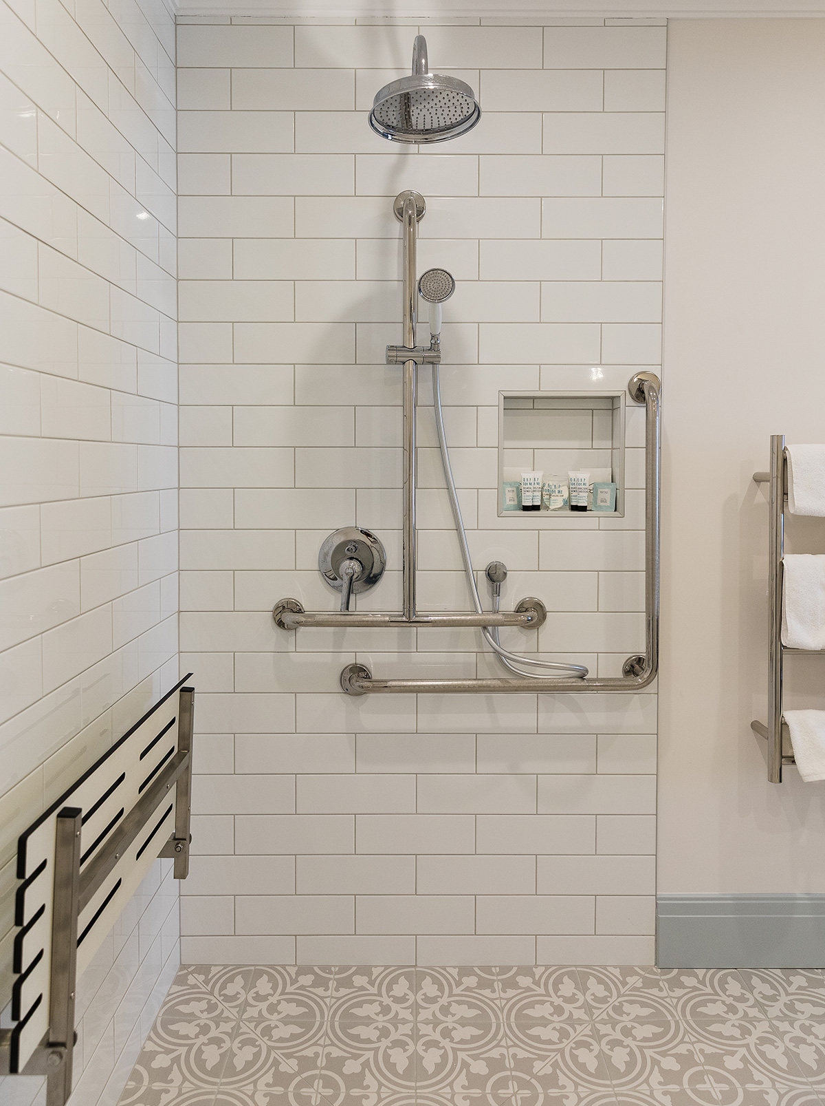 The accessible ensuite bathroom is thoughtfully designed with a flat-access shower, grab rails, and modern accessibility fittings to provide comfort and convenience without compromising on luxury. Wide doorways, smooth floor transitions, and intuitive layouts make these rooms ideal for guests with mobility needs or those simply seeking extra space and ease of movement.